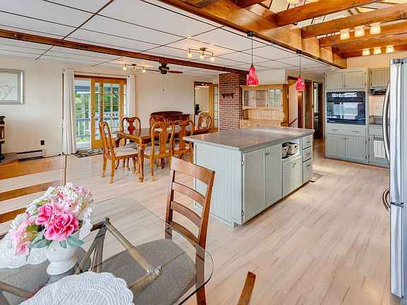 Perched on a knoll, this spacious house offers sprawling views of the White Mountains, and the wraparound deck provides plenty of space to lounge outdoors and take it all in. The outside also includes a cozy gazebo, a storage shed, and just over three acres of yard space to enjoy. Inside, you will find an open kitchen and living area, followed by a spacious finished basement and a large workshop. Tucked away on a quiet road, this unique property in Bethlehem is close to Main Street shopping, dining, and entertainment, as well as everything the area has to offer.
