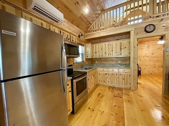 Charming 1BR/1BA Chalet with real log siding in quaint mountain community. This cozy cabin features beautiful all-wood interior with custom cabinets built on site, granite counter tops, stainless appliances, electric fireplace and and open loft for bonus room or storage and covered porch for relaxing. Home has paved road access, fiber optic internet and shared well.  Perfect vacation home for your mountain getaway or rental income property. Convenient location just minutes outside Murphy, NC city limits.