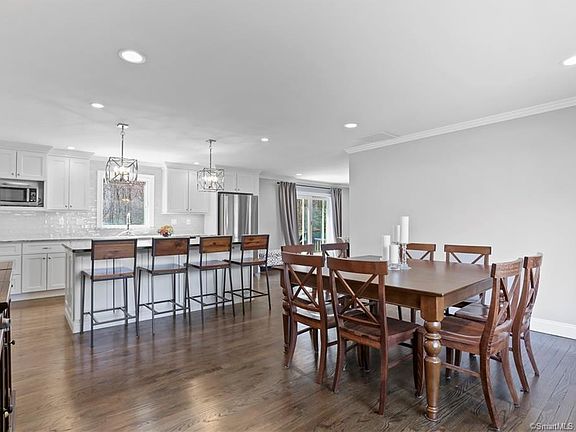 Sited on an acre in the desirable Nicholas neighborhood youll find this magazine-worthy, classic Colonial, which is renovated to perfection w/ gleaming hardwood floors guiding you through the home's airy, sun-drenched floor plan. The kitchen is a total showstopper dressed in honed & leathered granite counters complementing the custom cabinetry, 7ft island & a spacious dining area. In the family room, cozy up by the fireplace, watch the big game, or entertain & dine al fresco w/ easy access to the large deck. Finishing the 1st floor you'll find the front to back living room, laundry & half bath. Hardwood floors continue upstairs to 4 spacious beds & 2 full baths. The backyard is just as impressive, featuring a deck, fire pit & expansive lawn backing up to the wooded area, giving you ultimate privacy. Dont miss the charming bridge over the stream & look out for turtles, turkey & deer! This yard is calling your name to host get-togethers, play a pick-up game of soccer or relax w/ friends in your backyard oasis. Welcome to one of the most desired neighborhoods in Trumbull, surrounded by beautiful homes, safe streets perfect for walking & biking & plenty of parks. Located minutes from the library, churches, parks, schools, farmers markets & a quick drive to Route 8, 15 & 25. Tons of improvements such as new kitchen/dining room, baths, floors, siding, doors, windows, shed & landscaping - nothing left to do but move in & enjoy this special home in a coveted neighborhood.