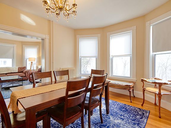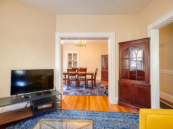 Fully furnished two bedroom, one bath apartment on the first level. Over 1100 sq. ft, large bedrooms, eat-in kitchen, separate dining room and living room. Includes all utilities-gas, electric, cable, internet, and water. Tons of natural light, fully equipped kitchen, gas range, dishwasher, refrigerator, garbage disposal, butcher block counter top and lots of storage space in cabinets and pantry. Linens, towels, bedding, kitchen glassware, cookware and cutlery included. Hardwood floors throughout, closets and built-ins for extra storage. Less than a 5 minute walk to the West Roxbury Commuter Rail station, and easy on-street parking. Large back and side yards. Available for a month-to-month lease. The lease is all inclusive with month to month contract. $3150/month with one month security deposit.