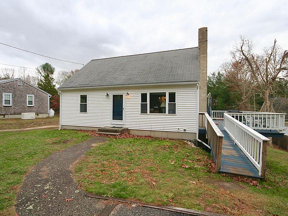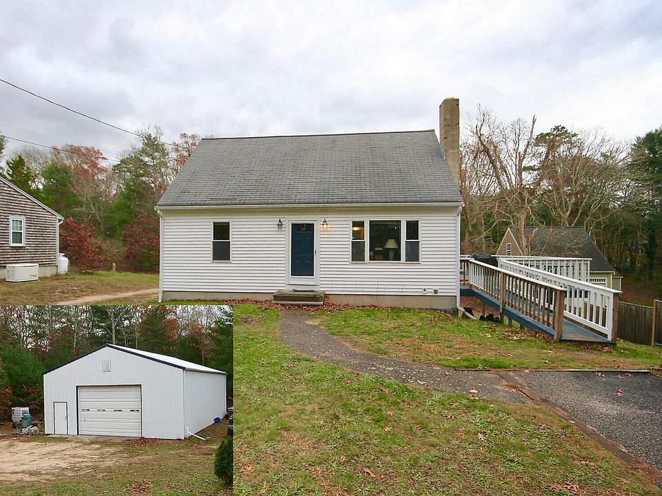 Monument Beach area Cape within a mile of Beach and Village. First level has living room, renovated kitchen, bedroom, den and full bath, upstairs are two more bedrooms and a half bath. Basement is full, unfinished, interior and walk out access. Behind the house is a huge Lester Building Systems General Use garage style Town and Country 30 x 48. Useful storage for contractor, boater, toy collectors of all kinds. All on a lovely .39 acre parcel on a quiet, peaceful street. passing Title V report in hand