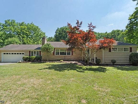 Exceptional Expanded Ranch set back beautifully on nearly one acre in a coveted east Mendham Twp neighborhood- move-in ready and storybook perfect from top to bottom.8 rooms, including 3 bedrooms, 3 full baths, lovely living room, radiant great room, delightful den, heartwarming kitchen w brand new stainless steel appliances, 2 fireplaces, sprawling finished lower level w walkout, full bath, and attached solarium, rear deck and patio, 2-car garage, new HVAC systems, plus the cherished benefit of one floor living. Wrap-around wood deck w magical views of the rear yard, cozy bluestone patio, horseshoe pits, fire pit, and beautiful woodland rear border w gently flowing stream- all these wonderful elements combine to create a private backyard oasis! Enjoy Mendham Twp's Blue Ribbon schools and IB program high school