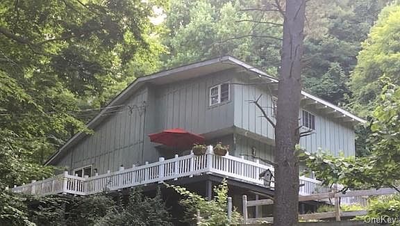 Fully available Nov. 30th Fort Montgomery Retreat house nestled in the woods has... a master suite with a pellet stove on the first floor; updated kitchen; formal dining room has a gas fireplace, hardwood floors and sliders to the wrap around deck; living room with stone fireplace with insert, vaulted ceiling, and access to the deck and sunroom. The second level has 2 bedrooms and a full bath. There a 3 out buildings and fenced yard. Minutes from the Bear Mountain circle and Palisades Parkway to the south and the United States Military Academy at West Point. Come and be one with nature.