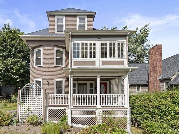 Large Philadelphia style home in Dorchester's beautiful Melville Park neighborhood. Each unit has two levels. The 2000 square foot first floor unit has a beautiful entryway foyer with leaded glass windows. The rounded bow front living room has a Chelsea tile fireplace that can easily be plumbed for gas. The dining room has pocket doors and the original built in china cabinet. The kitchen has granite countertops and island with a new built in dishwasher. An under counter washer and dryer are also hidden under the opposite counter. A dual fuel gas and electric stove and French door refrigerator are in excellent working condition. A charming breakfast nook looks out to a beautiful garden. A small bedroom off the kitchen could work extremely well as a home office or guest room. A large family or great room off the kitchen is perfect for entertaining family and friends. A larger spacious bedroom is near the full bath on the first floor. Notice the nine foot ceilings, crown moldings and charm throughout the unit. The second level upstairs is a fantastic master bedroom en suite. The suite has a walk in closet and full bath with walk in shower lined in beautiful Italian glass mosaic tile. Off the bedroom is a private deck that looks out to the treetops and over the back yard. Both units have stained and leaded glass as well as a fireplace with Chelsea tile. Two car garage and driveway with tandem parking for six vehicles. New roof as of 2015. New deck in rear. Beautiful gardens. Enclosed back yard. Short walk between two train stations; Fields Corner and Shawmut T on the MBTA's red line. Either one will bring you to downtown Boston in twenty minutes.