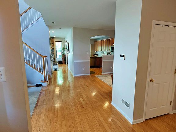 Bright and spacious end unit townhome on a Cul De Sac. Premium lot backing to open space, upgraded kitchen with extended maple cabinetry, granite countertops, ceramic tile backsplash, custom light fixtures and breakfast nook with sliding doors to rear patio. Beautiful hardwood floors thru-out first floor, oak staircase with treads, living room, cozy family room with gas & stone fireplace, wide & sunny hallway with balcony overlooking first floor, large master bedroom with two walk in closets, dressing area, tray ceiling with ceiling fan & recessed lights, master bath with soaking tub, shower & ceramic tile floor, 2 extra large bedrooms, carpet throughout 2nd floor, 2 car garage with insulated walls & electric door opener and many upgrades. Great location for everything. Schedule your showing today.