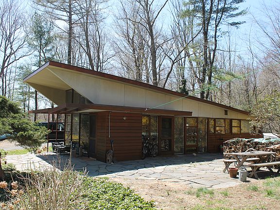 Usonia! Frank Lloyd Wright community including pool and tennis on beautiful private property in sought after Usonia. Wright-inspired design by noted architect, wooded views through walls of glass, large stone fireplace, exterior painted in 2013, greenhouse, 2 car garage, close to everything, byram hills schools, nature at its best!