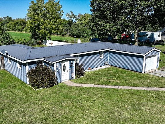 Welcome to village living at it's best with this spacious but cozy 2-bedroom, 1-bath, 1500 square foot home. This ranch sits on a quiet street with classic, small-town appeal. Inside, the open floor plan connects the living room and kitchen. The living room offers plenty of space for cozy gatherings, while the kitchen features ample counter space and cabinetry, and a perfect island for meal prep. The dining room is bright and cheery and ready for family time with patio doors leading to the spacious deck where you can relax, unwind, entertain and enjoy the private back yard. Both bedrooms are generously sized, offering room for comfortable sleeping quarters, with large closets for storage. Large bonus room where the utilities and washer and dryer are can be tailored to whatever extra space you may need. Beyond the great backyard, there is also a utility shed and outbuilding that is heated with a wood pellet stove. Perfect for a man cave, workshop or entertaining area year round. Come see everything this great home has to offer. Delayed negotiations till September 18th at 12pm.