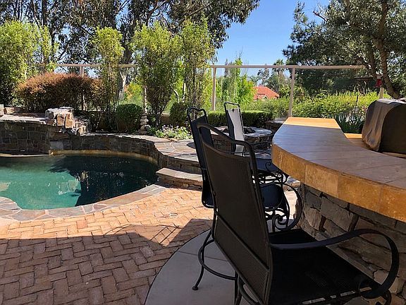 upgraded kitchen, woodwork and flooring throughout; built-ins in office; closet built-ins, garage built-ins, freeform stone pool with waterfall, spa, BBQ and firepit.