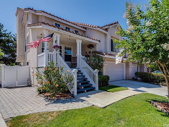 Exceptionally well maintained 3B/2.5B PLUS Bonus Room with remodeled kitchen & baths, upgrades throughout along with over-sized Entertainer's Backyard complete with large grassy area and above-ground spa (included). Remodeled kitchen with granite counters, breakfast bar, newer soft-close white cabinets, stainless steel appliances & includes refrigerator. Gorgeous wood laminate flooring, contemporary paint colors, window coverings and excellent natural lighting lend a sophisticated, yet relaxed feel to this spacious home. Split-level with master suite on main level that includes remodeled master bath and walk-in closet. Two additional bedrooms plus full bath located below PLUS bonus living room/hangout space that also affords access to fantastic backyard great for entertaining plus safe, fully enclosed area for children and/or pets. Direct access 2-car garage with driveway situated at end of attractive cul-de-sac. Very short 5 minute walk to Arroyo Vista Elementary & middle schools, plus nearby junior Olympic and kiddie pools, soccer & baseball fields, plus enjoy access to community Lake all for LOW HOA dues of $55 per month plus NO Mello-Roos taxes!