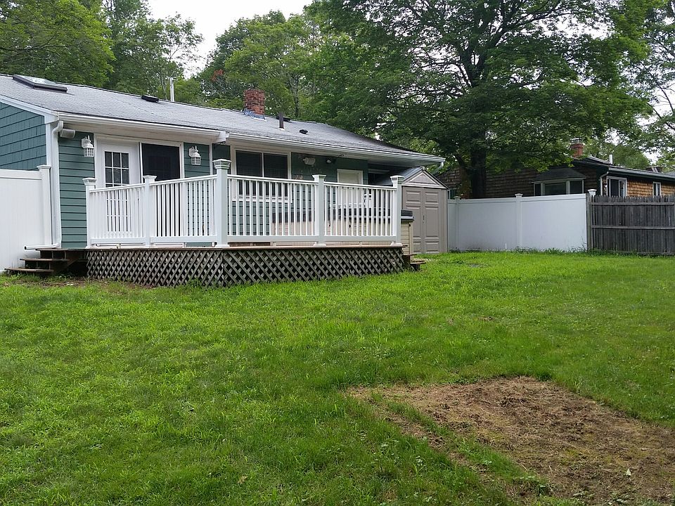 DON'T MISS OUT ON THIS BEAUTIFUL HOME! This totally remodeled straight ranch is in absolute Move in Condition! Open/Bright floor plan concept. Featuring Vaulted Ceilings, light Bamboo hardwood flooring, A newer large maple custom kitchen with solid Corian counters, upgraded appliances, over sized island, Formal dinning room with lots of windows, updated bath, King Size master and 2nd large bedroom. Newer Gas heating system, Central Air, On demand gas hot water, Roof & Skylight are only 3 years old, New vinyl siding & gutter system, A large Trex Deck over looks a fully fenced in level back yard with an over sized Garden/Storage shed. All located on a quiet side street (dead end) in an established neighborhood of similar type homes but on minutes to highway, shopping, schools,commuter rail and more. This fine property has so much to offer! SELLER CAN CLOSE ANYTIME!