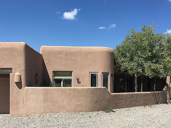 Selling as is. This house is situated on a 1.6 acre estate lot with fabulous mountain views in Rancho Viejo. Bounded on 3 sides by road and running/biking trails and on the 4th side by a brand new home still under construction. Mix of natural and landscaped front and back with a circular driveway. Over 300 linear feet of coyote/stucco fence bounding back yard and fenced xeriscape front yard. Mature evergreens and aspen within walled area. Open space with high ceilings. Front and back portals with fantastic panoramic views of NM mountains. You won't find many this quiet and private. Private. Panoramic. Spacious. Well kept.