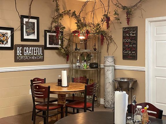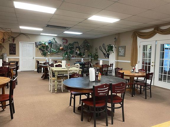 TURN KEY OPERATION: LAND-BUILDING-BUSINESS --The business has approx. 2550 sq ft. The Dining room includes tables & chairs. It has a restroom. The kitchen area is well stocked with appliances needed to run a restaurant and a catering business. The kitchen has a walk-in freezer, walk-in cooler, also a smaller cooler for food already prepared. It has (2) big "Hobart" commercial grade mixers, (2) "Vulcan" stoves with a griddle & another commercial grade oven. The kitchen also comes with (2) deep fryers, a commercial exhaust system, 2 (3) component sinks a food warmer & 5 stainless steel tables for preparing food. Also being a catering business, it will have much more in the way of preparing and dispensing foods. It has a steam table as well as various tables, shelving(storage), rolling carts, (10) portable warmers, (15) chafing dishes, lg rolling racks with pans, handwashing station & an abundance of pots & pans. There is an extra building on the back for storage. In the lobby,