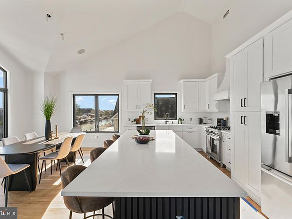 Experience modern coastal luxury in this brand-new, custom-built home situated on a naturally deep-water lagoon in Mystic Island. Designed with a reverse living floor plan to maximize water views, this residence blends high-end finishes with thoughtful functionality. Inside, you’ll find white oak hardwood floors throughout, a chef’s kitchen with quartz countertops and backsplash, Bosch stainless steel appliances, and an open-concept layout perfect for entertaining. The expansive living area seamlessly connects to the outdoors through 14' bi-fold patio doors, leading to a fiberglass deck with stainless steel cable railings. Smart-Home Ready for Modern Living — this home features complete Wi-Fi pre-wiring for seamless whole-home coverage, dedicated wiring for indoor and outdoor multi-zone audio, and every TV location is ready for a clean, wire-free installation. Additional highlights include a 3-level dumbwaiter for convenience, tankless water heater, and PVC board & batten siding for timeless coastal charm. Outside, a vinyl bulkhead borders a naturally deep-water lagoon that can accommodate large boats, offering easy access via Roundabout Creek to Great Bay — with no bridges to go under. Whether you’re seeking a year-round residence or a stunning shore retreat, this home delivers the perfect balance of elegance, comfort, and waterfront living.