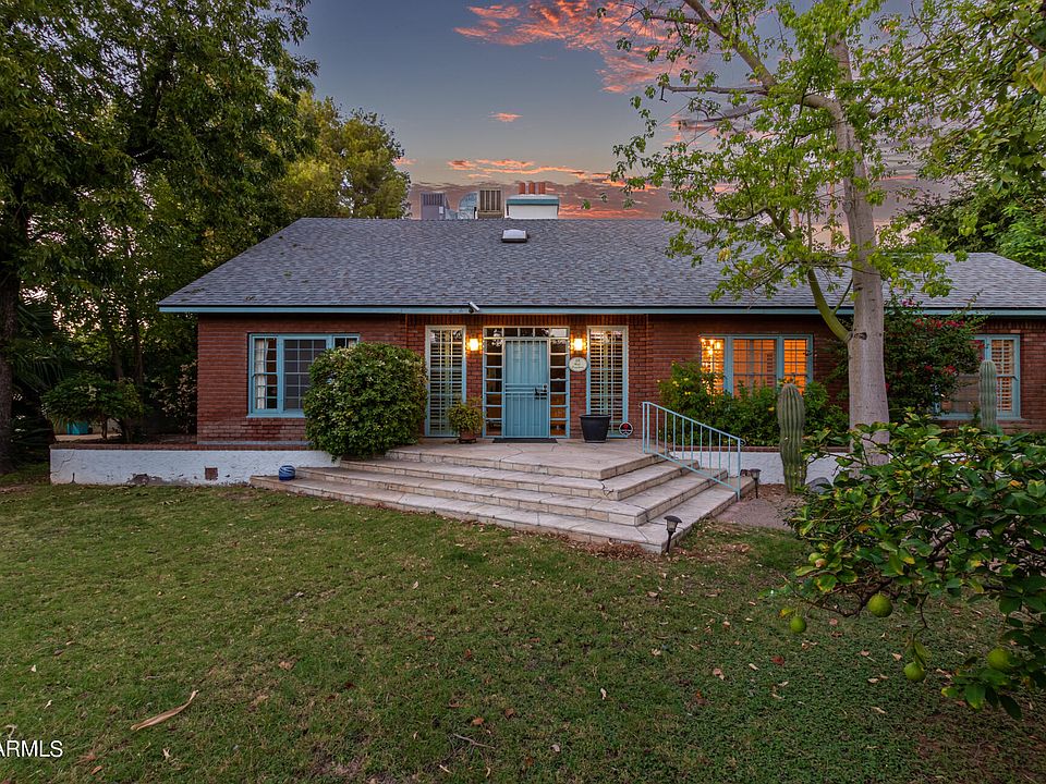Discover your dream home in the heart of Uptown Phoenix! This property captivates from the first glance, with its stunning light blue trim highlighting the classic red-brown brick. Be swept off your feet by the delightful array of details upon entering. Original hardwood floors, antique door frames, and a spectrum of ceiling textures set a scene of timeless elegance, while plantation shutters and skylights infuse the space with a bright, contemporary touch. The living room has bookshelves and a snug fireplace. Two upstairs suites with spacious baths. Main bedroom downstairs with access to the AZ room. Separate guest loft house. Outside, the backyard is an oasis designed for leisure & pleasure, with multiple covered patios, and a refreshing pool. Be ready to experience the lifestyle of the Medlock Historic District, walking distance to Uptown-plaza, shops, restaurants, etc. Claim your piece of paradise!