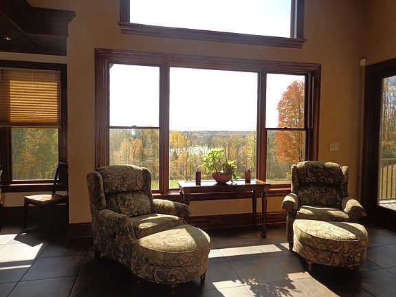 One of a kind property nestled on 10 acres overlooking Shenango Resevoir. Owner is in construction and was built as a dream home. Construction is superior from the poured concrete, 14 course foundation. Many full length windows and high ceilings help bring outside world in. A home for all seasons with decks on all levels offering views of dam. 4 bedrooms, 4 baths, lower level walk-out. 3 car detached garage with living quarters. Heat type and cooling are both geo-thermal.