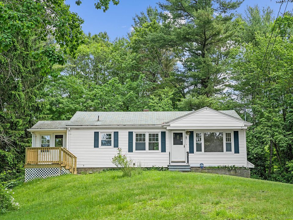 Wonderful location on Mass/CT line convenient to highways, shopping, etc.! Lovely 2 bedroom ranch totally and professionally renovated. Gorgeous bright and light applianced kitchen with breakfast bar and granite countertops Spacious living room with newly refinished hardwood floor. 2 good-sized bedrooms with hardwood floors. Other recent updates are new roof including plywood, fabulous bathroom, new room on lower level with closet and 1/2 bath, suitable for many uses. Walk-out basement, deck, garage under. Very private lot surrounded by woods and at end of street. Lovely neighborhood!