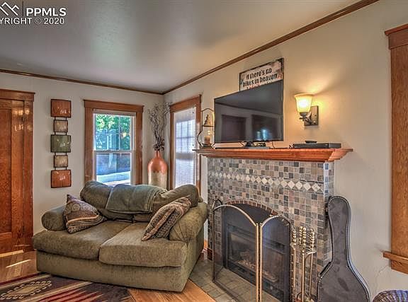 WOW!!! Immaculate Stucco Rancher with unfinished lower level. Wood floors thru-out. Newer windows and roof, beautiful gas fireplace in the living room. All Kitchen appliances are included, separate dining area, 2 Large Bedrooms, 1 Full Bath with an Iron Tub, and 1 Car Garage. Large unfinished lower level, has lots of potential with washer, and dryer included. Usable backyard with views of Pikes Peak. Sits on the sunny side of Manitou springs, gorgeous scrub oak, and oak trees. Come and show today!