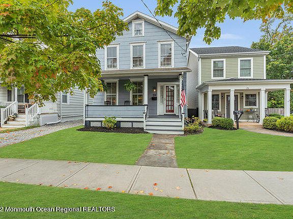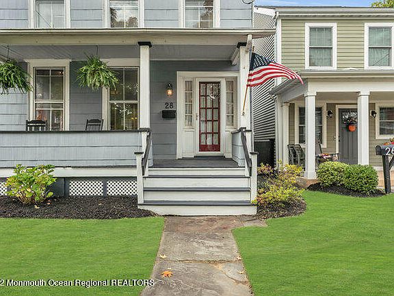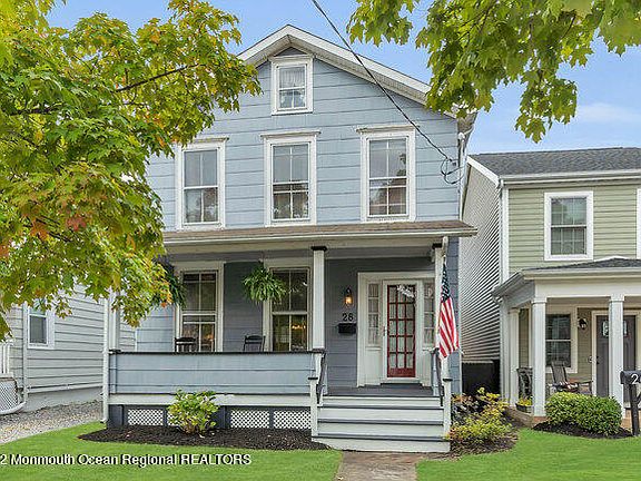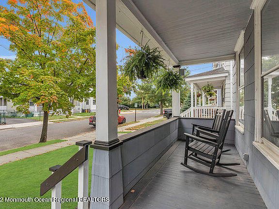 is so welcoming. Enjoy the addition with tastefully updated kitchen with quartz countertop, glass subway backsplash, quiet close cabinetry, stainless steel appliances with pantry/laundry adjoining. You will also find a beautiful full bath with penny tile floor, pedestal sink and walk in shower w/bench seat. All bedrooms are a generous size as well as full bath with tub on the second story. Add to this the walk up attic, full basement &proximity to downtown Red Bank, beaches & transport and it is a true winner Seller has just completed getting the floors redone and re stained as well as the upstairs bedrooms getting a fresh coat of paint as an added bonus!