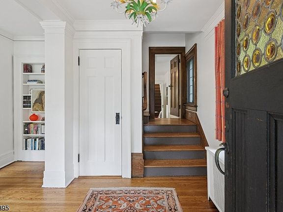 Just a quick 0.3-mile stroll to Watchung Plaza's coffee spots, indie shops, fitness studios and the NYC train/bus, this four-bedroom Dudley van Antwerp stunner nails that City-meets-suburb sweet spot. Original Arts & Crafts character shines throughout beginning with amber bullseye glass at the entry, pristine leaded windows throughout, and rich natural chestnut woodwork. The first floor flows effortlessly with a gracious foyer, eat-in kitchen with walk-in pantry, living room with a wood-burning fireplace, dining room wrapped in gorgeous chestnut trim, and a family room that opens to a cozy screened porch plus a powder room. Upstairs, find four bedrooms, including a primary suite with en-suite bath, a second bedroom with its own half bath, and two more bedrooms served by a full hall bath. A walk-up third floor offers loads of potential for a studio, play space, or whatever your imagination dreams up. Recent upgrades include a newer kitchen, baths, roof and more. Kick back outside with a patio overlooking the deep, perennial-gardens and a rare three-car garage ready for bikes, boards, or weekend projects. Historic soul, modern updates, and a tranquil location that still keeps your city habits alive.
