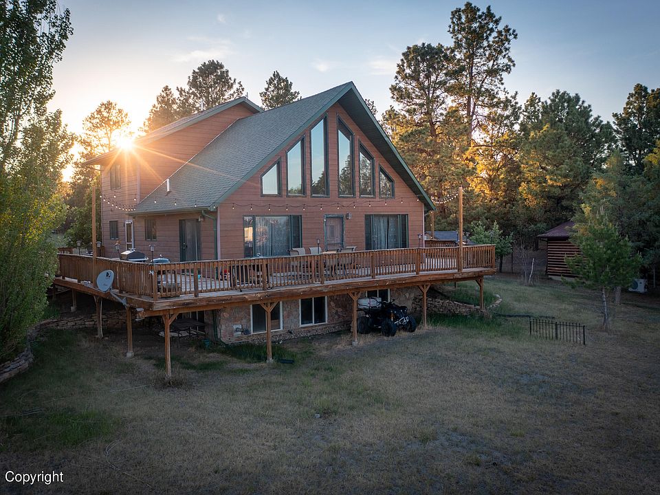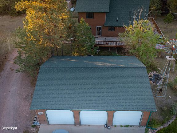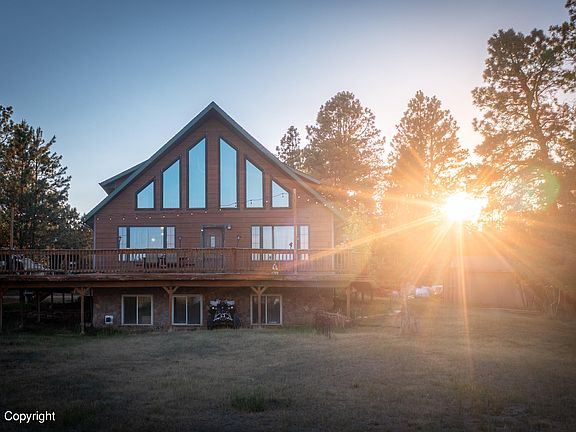 Magnificent A-Frame Stickbuilt Wyoming Cabin on almost half an acre, with panoramic views of the lake and golf course. Situated on a corner lot in the heart of Pine Haven. Open floor plan and tons of natural light with all the windows. Separate 3 Bay Garage/Shop and lots of extra parking. Cathedral ceilings, loft includes an electric fire place, 3 bedrooms 2 baths and an unfinished basement that is framed and offers daylight windows. Gorgeous wrap around deck complete with lighting, pond (currently not running) & lots of mature trees. RV parking with sewer and electric alongside a 3 car garage/shop with heated floors. Minutes from the lake makes this home perfect! Bring the boat and toys and enjoy the lake and more!