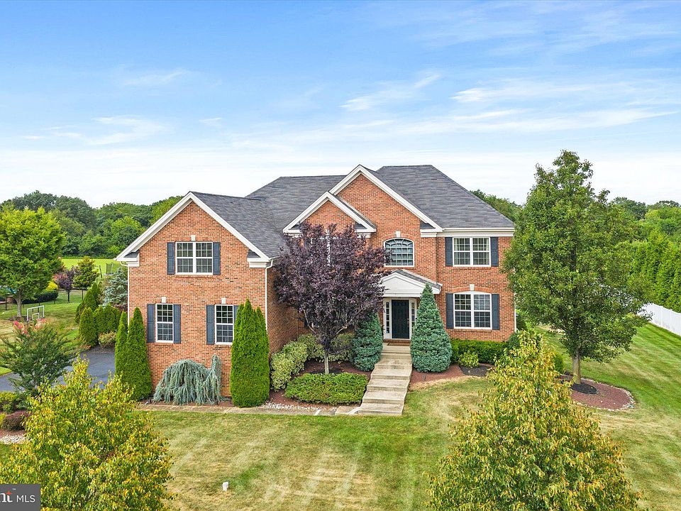 Welcome to this impressive 4 bedroom, 3.5 bath center hall colonial home nestled on a premium lot in the highly desirable Meadows at Mansfield neighborhood in picturesque Mansfield, NJ. With a classic brick front, this home exudes timeless charm and elegance. As you step inside, you are greeted by a grand 2-story foyer adorned with beautiful hardwood floors, setting the stage for the elegance that lies ahead. To your right, a large sitting room awaits, boasting crown molding, wainscoting, and new hardwood floors, creating a warm and inviting space to relax or entertain. To the left of the entrance, you'll find a spacious dining room with hardwood floors, perfect for hosting memorable gatherings and special occasions. The first floor also features a bonus room offering versatile space to suit your needs, perfect for home office or playroom and a convenient half bathroom. The true showstopper of this home is the breathtaking 2-story family room, featuring a gas fireplace that adds both warmth and ambiance. The vaulted ceiling and recessed lights create an open and airy feel, while ample natural sunlight streams in, bathing the space in a warm glow. The family room seamlessly flows into the gorgeous eat-in kitchen, adorned with hardwood flooring. The kitchen is a chef's dream, boasting a large center island, 42" cabinets, granite countertops, a beautiful stone backsplash, and top-of-the-line stainless steel appliances, including two ovens. An ideal space for culinary creativity and family gatherings. The kitchen also connects to a large pantry and a convenient laundry room. A back staircase leads to the second floor, where you'll find four nicely sized bedrooms. The primary suite is an oasis of luxury, with recessed lighting, two walk-in closets, and a linen closet. There's even a bonus space perfect for a sitting area or dressing room, adding a touch of indulgence to your daily routine. The connected ensuite bathroom is equally impressive, boasting a large soaking tub with picturesque views of the backyard and neighboring farmland. Dual vanity, a walk-in shower with ceramic tile, a makeup area and a separate toilet room/waste closet completes this spa-like retreat. The second bedroom offers a Princess Suite with connected full bathroom. Venture outside to your backyard oasis, where Trex steps lead to a paver patio featuring a stone fireplace, creating a cozy and inviting outdoor space. An outdoor kitchen area with a gas grill and fridge makes al fresco dining a breeze. The huge backyard offers serene and private wooded views. Additional features include a large 3-car garage and a full unfinished walkout basement, providing endless possibilities for customization and expansion. The home also boasts a newer water softener, a 2-zone HVAC system and an alarm system, ensuring your comfort and security. Close to 195, 295, NJ & PA TPKS and MDL Joint Base and located in Northern Burlington Regional School District. Embrace the charm, luxury, and convenience that this home offers and schedule your private tour today!