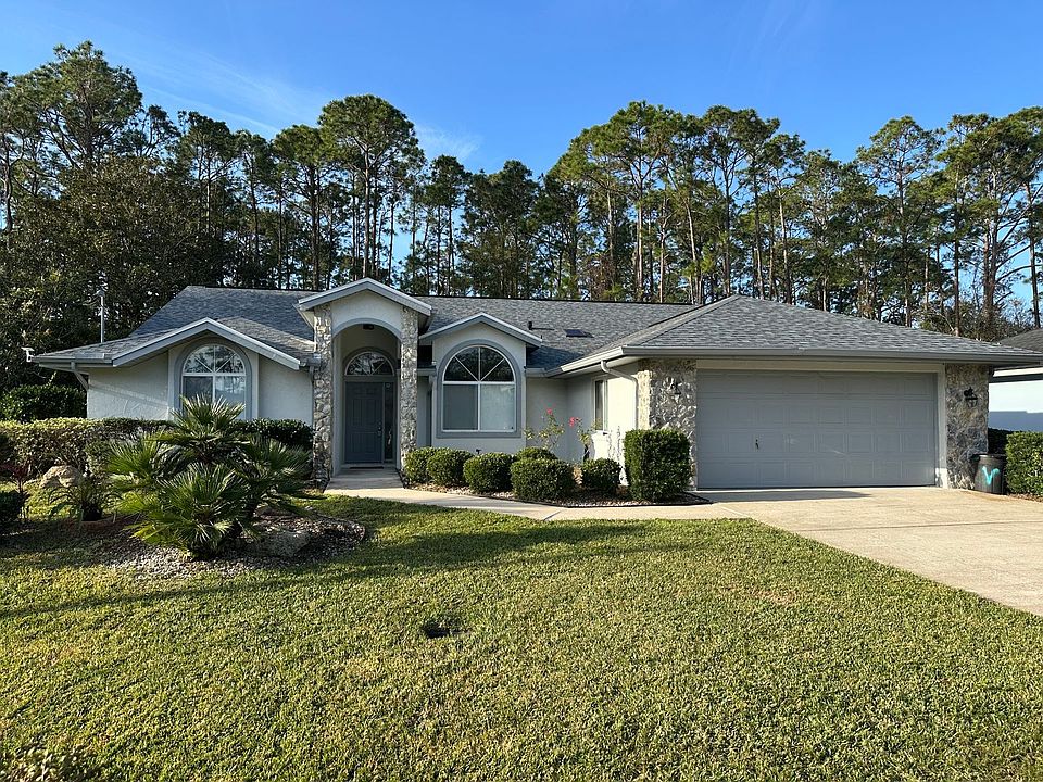 Welcome to this Gorgeous Executive Pool Home on a cul-de-sac in the Pine Lakes subdivision of Palm Coast, FL! This beautiful house features 3 bedrooms and 2 bathrooms, with skylights and vaulted ceilings creating a bright and airy atmosphere. The large Master bedroom features a walk in closet and master bathroom with a luxurious garden tub, perfect for relaxing after a long day. Secondary bedrooms are oversized. A wet bar complements the living space. Laminate and tile flooring throughout the home. Other features: a 2 car garage, screened porch, covered patio, and inside laundry room. Don't miss out on the opportunity to make this lovely property your new home! Available now for your enjoyment.