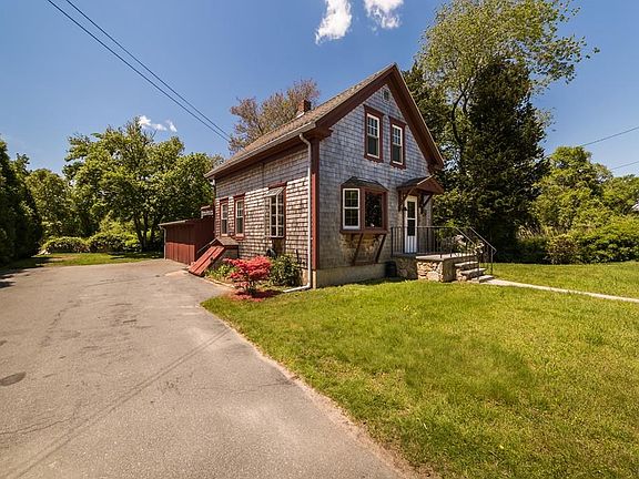 This classic old farmhouse rests in its own little country setting, enhanced by large trees and established plantings, as well as a backyard stream. The attached carriage house compliments the country esthetic with large barn doors opening to a workshop and storage space. Entering the side door, the interior hosts an eat in kitchen with pine cabinets, paneled living room, and a third room for dining, office/den or bedroom, while the upstairs adds 2 bedrooms and 1 bath. Located in an established, quiet, well kept neighborhood, it is within walking distance of the bike path/walking trail and offers convenient access to shopping, banks, and grammar school, as well as Rte.195. Its price and location are an investor's or a first time home buyer's dream. With a little TLC, this farmhouse could be a gem!
