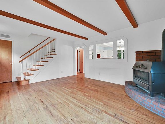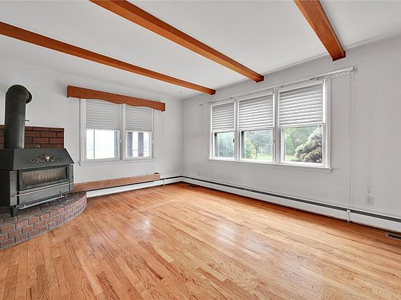 What a find. Single family detached home on 1.2 acres at this price! Flexible floor plan with 2 bedrooms and full bath on 1st floor and 2 more bedrooms on second floor. Terrific super size eat-in kitchen with 31 handles, dishwasher, electric oven and lots of counter space. Adjacent is enclosed front porch that makes additional dining space, breakfast room or rec space. Lots of hardwood floors throughout, wood stove in living room that provides plenty of inexpensive heat. Large living room with beam ceiling. All large bedrooms. Expandable basement with high ceilings and outside entrance. BRING YOUR HOBBIES, terrific outside space with oversize 2 car garage and additional car storage or hobby space. This is a great property for gardening, car enthusiast, or any hobby you can think of. Nice condition ready to make your own.