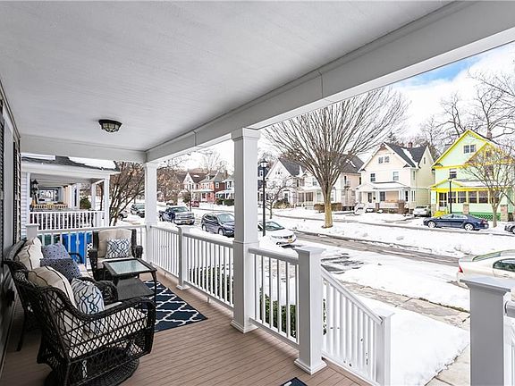 Rochester dream home! Located near Cobb's Hill w/ access to 490 & area's best restaurants and shops, this home has been thoughtfully updated from top to bottom while retaining its historic charm. Spend spring evenings on your front porch overlooking the picturesque neighborhood, & summer nights on your backyard deck. Gumwood trim accents the 1st floor, which includes a living room w/ fireplace, formal dining room, & updated eat-in kitchen with stainless steel appliances & breakfast bar, + powder room. 2nd floor: 4 spacious bedrooms, elegant full bath, & built-in coffee bar. On fin. 3rd floor, you will find a master suite w/ cathedral ceiling, full bath, & walk-in closet. Part. finished LL has media rm & 3rd full bath. Updated mechanics: electric, water, plumbing, smart home, roof & more!