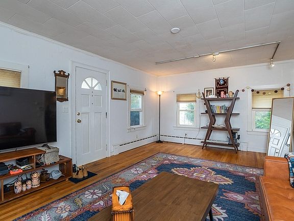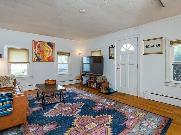 Larger than it looks! 1+ bedroom/1 bath bungalow on a little over a half acre lot, with detached 1 car garage, located just a moment away from Easthampton center. Flexible, single-level floor plan offers a primary bedroom, full bath with tub/shower and tiled floor, spacious living room, office (could be a small guest room), and 3-season porch -all with hardwood floors. The updated eat-in kitchen offers range, microwave and refrigerator. Partially finished room downstairs could be used as workout space, or for storage. Additional storage room located off of the main basement area, is adjacent to the rear walk-up steps that lead to the backyard and fire-pit area. Detached single car garage with opener, too. Don’t miss it!