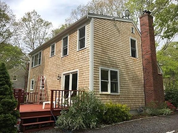 This magnificent cape is a short stroll to Peter's Pond. Move right in to the recently updated home. This includes a new roof! Large modern kitchen with new appliances, loads of counter space w/island. Large formal dining room/living room has a fireplace with a large glass window off the main entry that fills the room up with natural light. There is a bedroom on the 1st level, large pantry and full bath, has an over-sized slider leading to a spacious custom built sit down deck overlooking the private yard. The upstairs features 2 large bedrooms and bath. The basement is finished has an area for a gym/home office, private laundry and lots of storage. The 2 car garage is over-sized with aloft above. Just a wonderful setting with lots of trees and flowers.... Don't miss out on an opportunity to live in the heart of East Sandwich!