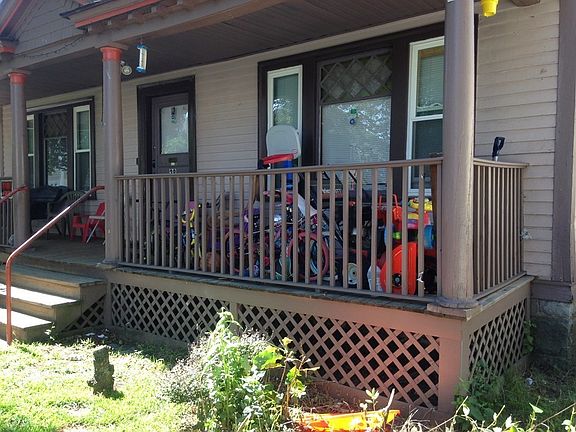 Expansive home with lots of yesteryear charm. Wood floors throughout, with built-ins, large country kitchen with pantry/closet, hardwood floors and newer cabinets. Upgraded 1st fl 1/2 bath with built in cabinet, Dining room with hardwood floors with wide pine inlay, picture window, French doors and fireplace, living room with French doors and picture window. Second floor laundry room with 4'x5' utility room and built-in folding table, 2nd level foyer with window seat, upgraded bathroom, office and walk-up attic. Wrap around front porch and fenced in back yard. Newer boiler and new water heater in 2022. Easy access to the highway and downtown. Home needs some love and a real diamond in the rough.