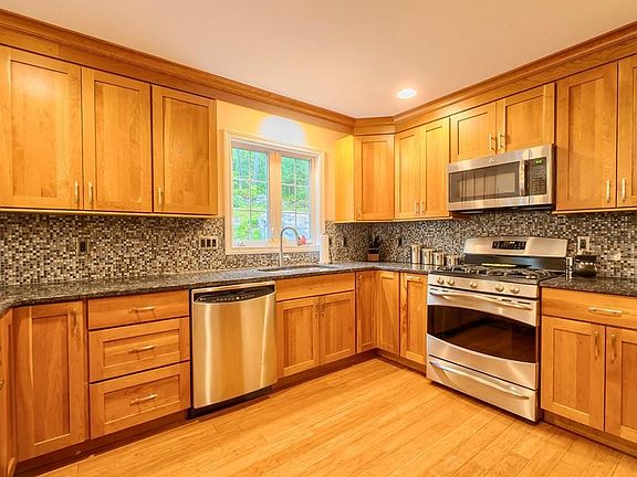 Impeccably maintained and beautifully updated, this 4 bedroom 2.5 bath Ayer Colonial is the home you've been waiting for! Set back from the road on a private, wooded 3.11 acre lot, you would never know you're minutes from 495! From the moment you enter this impressive Colonial you will notice the upgrades. Scraped bamboo flooring flows throughout the first floor, with tile in the updated half bath. Beautifully updated kitchen with granite counters, soft close cherry cabinets, wine fridge, stainless appliances and spacious dining area. Pella sliders lead out to the freshly stained deck overlooking this peaceful wooded lot. Keep cozy next to your choice of 2 fireplaces! One fireplace in the freshly carpeted and painted finished basement and one in the main living room! 2nd floor features laundry in full bath, 4 bedrooms, including an impressive master suite- vaulted ceilings, walk-in closet, master bath w/ jetted tub and more! Walk up heated attic w/ finished bonus room! See 3D Tour!