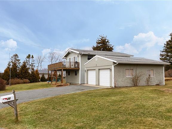 Beavertail area contemporary cottage with distant water views, and lovely sunsets. Enjoy the afternoon breezes while relaxing on the mahogany deck. Located on just over a 1/2 acre with frontage on two streets, offering lovely mature plantings. The vaulted great room has walls of glass, and sliders to the expansive deck. The 2nd level master bedroom is an ensuite. 1st floor level offers 3 additional bedrooms, a full bath, and laundry. There is a detached 2-car garage. Currently rented thru July 10th, 2020.