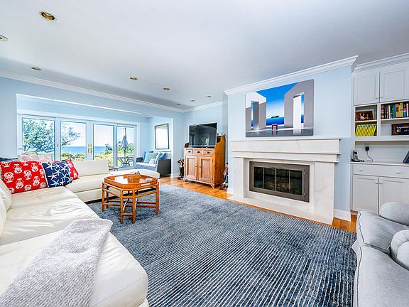 Outstanding oceanfront Sears Point condo with incredible views of Cape Cod Bay and just steps to the private beach. Enjoy the view and lovely lawn setting from the handsome, expansive deck. This beautiful three-bedroom unit uniquely features the exceptional workmanship of up-to-date renovations including the expansion of the lower level. The main level has an open floor plan with dining area and great room. The well-equipped kitchen features granite countertops; island with gas stove top and seating; butler's pantry with wet bar, built in wine & beverage coolers. The primary bedroom has views and a private bathroom. A guest bedroom is on the main floor with a hall bathroom. The lower level has high ceilings, sitting room area, 3rd bedroom with adjoining private bathroom. Amenities include hardwood floors, gas fireplace, built-ins, striking staircase to the lower level, 2022 AC replacement, 2021 gas furnace and garage. Sears Point offers acres of grounds, a private beach, pool and tennis courts.