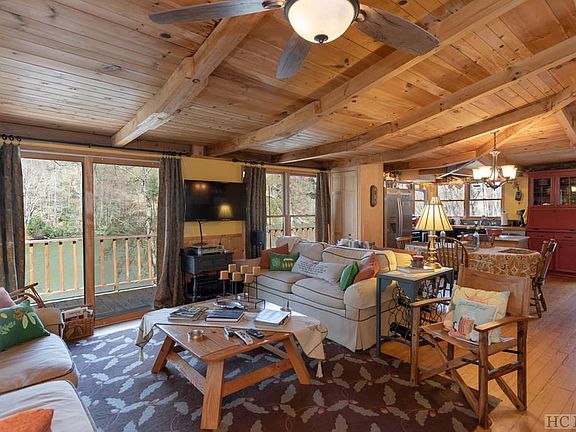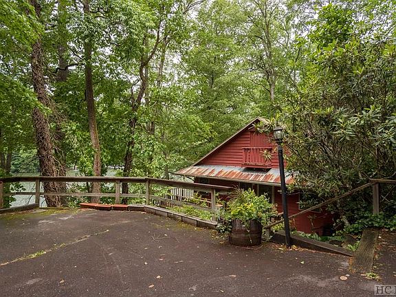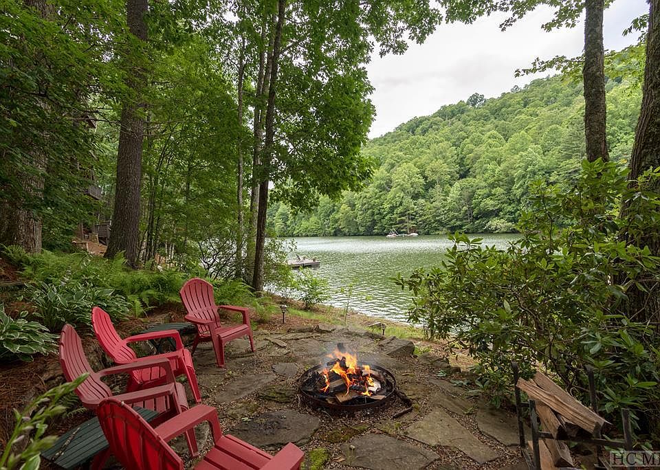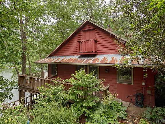 Magnificent scenery, cool temperatures, and the occasional white squirrel highlight the short drive from the dining and shopping of Cashiers to this lakefront home on the east side of Lake Glenville. With a tucked away loft, wonderful wood details, and tons of natural light, the two-bedroom, two-bath cabin is loaded with rustic old world charm. The open concept floor plan between the living, dining, and kitchen areas creates a space for effortless entertaining. The views from your living area invite relaxation on the large deck overlooking the lake, enjoying the cool breeze after a long day playing in the water. The home sits close to the water with steps leading to the charming outdoor entertainment space, private dock, and shoreline rock wall. Family and guests of all ages will love this paradise getaway with so many activities to enjoy, such as boating, swimming, fishing, canoeing, picnicking, hiking, and more!