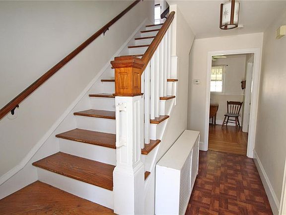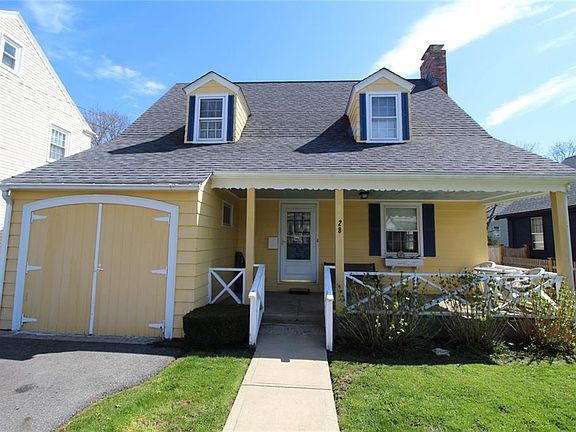Character filled 2 Bedroom/1.5 Bath Cape Cod has the potential to suit many needs. Beautiful hardwood flooring throughout. Features include divided lite doors, glass doorknobs, brick fireplace & covered front porch. The front entry hall opens to the spacious living Room that has space for a large dining room table as well. French doors open to a cozy breakfast area and the galley kitchen is beyond. The integral garage has been converted to living space which could be used as first floor bedroom, office or den. There is also a half bath on the first floor. The second floor has two front to back bedrooms and a bathroom with large shower and classic black and white basket weave tile floor. The private backyard has beautiful mature plantings, a storage shed and a covered back patio. The covered front porch will be a favorite gathering spot. The convenient location is close to shopping, beach, downtown Newport and also has easy access to bridge and base.