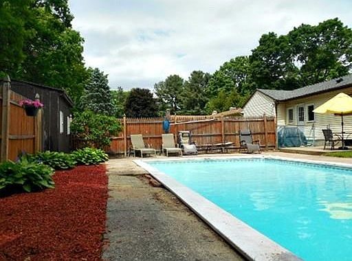 The LOCATION YOU'VE BEEN WAITING FOR! A minute from the golf course in a lovely neighborhood of no -exit streets. So welcoming! this home boasts a large bright living room with a picture window and a fireplace. The dining area and the kitchen afford a view of the sparkling inground pool. Watch the kids laugh and splash all hot-summer long! Your breezeway is a wonderful addition to the amenities of this home. Leave your books, bags and boots and come on in. On the main level you'll enjoy the bright galley kitchen and the large family room, plus a sizable master and a tiled floor full bath. But there's more - the lower level is fabulous with dedicated space for a workshop, an office or hobby room, a super-sized rec room that runs from one end of the house to the other - big enough for bowling! and a second full bath. The fenced yard is the perfect size and the IG pool is a Major Plus - This is the one you've been waiting for. Location, quality, comfort. Call today!