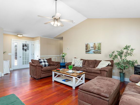 Fantastic single-level, 3-bedroom home on almost 3 acres in a peaceful Fairfax setting! Perched on a hill, this home is one of the last houses on a dead end road with ample privacy! Just inside, you’re greeted by a spacious living room with vaulted ceilings & large windows that fill the space with light making it feel warm & inviting. The living room connects directly to the kitchen & dining room, giving you a great layout for entertaining or spending time with loved ones. The kitchen includes plenty of cabinetry & prep space, and bar-height seating at the peninsula. Your primary bedroom will be your private getaway with a freshly painted en suite full bathroom, walk-in closet & tray ceiling to give the room an open, spacious feel. Also on the main level are 2 additional bedrooms, a ¾ bath, laundry and direct access to your insulated & heated 3-car garage - an amazing bonus feature! The lower level has tons of finished living space for you to make your own! There’s an office, playroom, entertainment area with a bar set up, tons of built-in shelving, storage & more! Outside, sip your coffee while you enjoy the sunrise from your front porch or set up a grill on your back deck for an outdoor BBQ. This home includes a shed with a garage door for your mower, tools or other equipment, and a wonderful lot for gardening, recreation & more! Great location, equidistant to Fairfax Center and St. Albans City and just 10 minutes to schools, shopping & I-89! Delayed showings begin 4/13/24