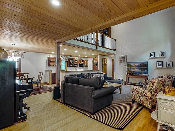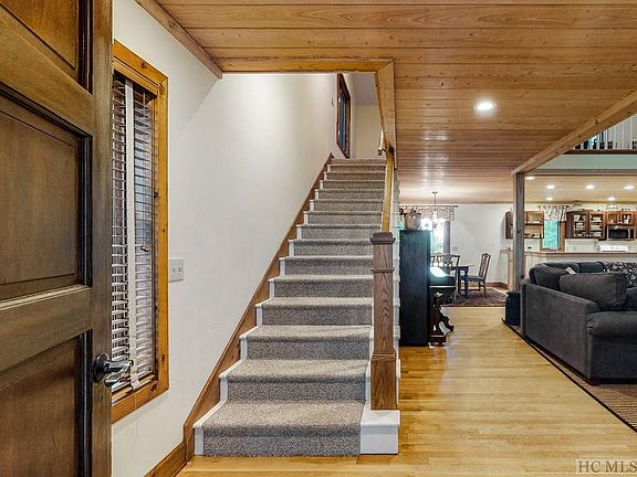 Welcome to 28 Windy Hill Rd, a magnificent three-bedroom, three-bath home on five acres in Highlands, NC. Step inside and be greeted by a thoughtfully designed, elegant yet comfortable interior. The open concept layout creates a warm, inviting ambiance, with abundant natural light. The spacious living area is perfect for relaxation and entertainment, while the adjacent dining space sets the stage for memorable gatherings. Other main level features are a convenient guest bedroom, a large deck, and a nice kitchen with a large pantry. The primary bedroom commands the upper floor with a generous bathroom and walk-in closet. The lower level includes the third bedroom, a bathroom, a den, garage, and storage space. With a ridgeline view as your backdrop, you can create your own outdoor oasis and enjoy stunning sunsets; this property offers limitless opportunities to embrace the great outdoors. Conveniently located near Highlands, this home provides easy access to the town's many amenities, including renowned restaurants, boutiques, and outdoor activities. Don't miss your chance to own this exceptional home! Experience the perfect blend of privacy, comfort, and natural beauty at 28 Windy Hill Rd. Schedule a showing today and discover the epitome of mountain living.