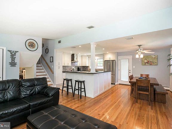 LOVE IT! This 4 BR, 2/1BA home has been updated throughout! It all starts at the front door with it charming covered porch entry. The open floor plan features a sunlit living room with a big window, dining room with a door opening unto a large patio, and a fabulous new kitchen stocked with all the amenities you are looking for ~ white cabinetry topped with black granite, custom tiled backsplash, stainless appliances and range hood and a convenient breakfast bar. Hardwood floors on the 1st and 2nd floors, recessed lighting and a crisp, new color palette add to the ambiance. Upstairs is the master bedroom with lots of closet space and an updated private bath. Three secondary bedrooms are serviced by another updated bathroom. The lower level features a large family room and half bath on the lower level and a large laundry room with door to backyard. You'll be spending a lot of time in the backyard this summer. The supersized, level, fenced in yard is perfect for outdoor games and cookouts. Relax on the large patio at day's end and count your lucky stars!