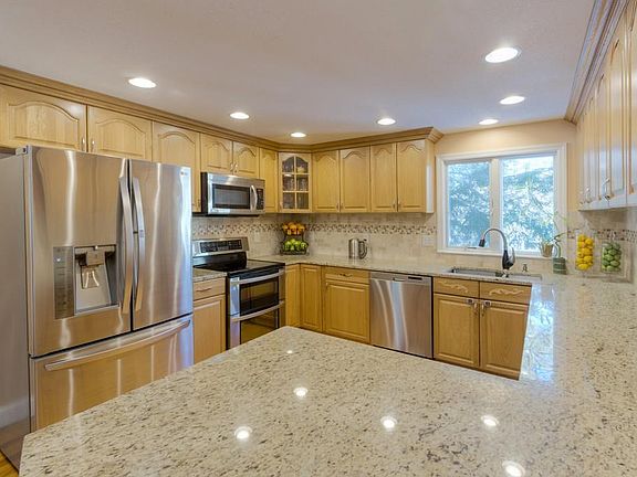 Elegant and modern 3 bedroom, 2.5 bathroom colonial on a large lot in a secluded, cul-de-sac neighborhood. Features a spacious kitchen with granite counters and stainless steel appliances, expansive deck with scenic views, vaulted ceilings, skylights, recessed & LED lighting, newer roof, windows, doors, deck, furnace, oil tank, and hot water tank (all APO). Also offers a finished rec room in walk-out basement, a shed, tree-house, circular driveway, sprinkler system, and professional landscaping. A beautiful and serene place to call home.