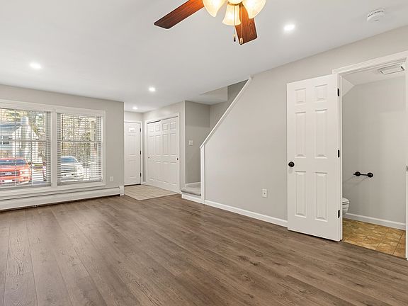 Completely UPDATED move-in ready 2 bedroom, 2 bathroom townhouse in desirable Woodland Green! The bright NEW eat-in kitchen features brand new appliances, quartz countertops and white shaker-style cabinets. Right off the kitchen, through the new sliding door is a private composite deck overlooking the woods and nature. New flooring throughout was just completed, including hardwood on the first floor. A large family room, half bathroom with new vanity and a conveniently located laundry closet complete the first floor. The two bright and sunny bedrooms upstairs are separated by a full bathroom. Public water, sewer and natural gas. The upgraded RINNAI heat and hot water system is only a few years old. An additional exterior storage closet is right next to the front door. Woodland Green condos are conveniently location close to grocery stores/shopping and near the Maine/NH seacoast and mountains. Each building was constructed to keep many of the original trees and wildlife. Clean, freshly painted, updated…THIS HOME IS 100% TURN-KEY.