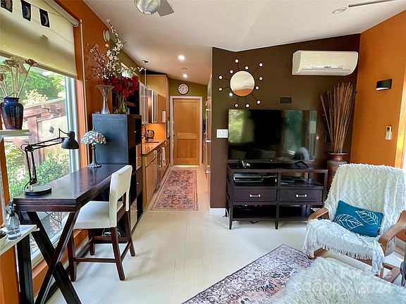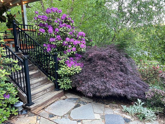 This private and peaceful income-producing property outside the city limits is nestled in the beautiful Riceville Valley of East AVL. Unique hi-tech modular home w/12" poured concrete foundation & 6" foam-filled walls, steel siding & roof built for solar panels & capturing rain water w/floor-to-ceiling passive solar windows, Gaggenau oven & refrigerator, gas cooktop, Rinnai on-demand tankless water heater, whole-house water filtration system, a cozy wood-stove, plus automatic whole-house back-up generator! Minutes to WWC and trails, Trader Joe's & all the great hotspots Asheville is known for. Such beautiful established landscaping w/raised garden beds, a greenhouse space, plus mature fruit trees (apple:pear:peach:grape vines:blueberries:elderberries). Lower Studio is a long-time successful AirBnB plus a separate 12'x24' garage w/studio space above (currently rented month-to-month for $1000). This property has been a mini-goat farm with chickens, and bees.