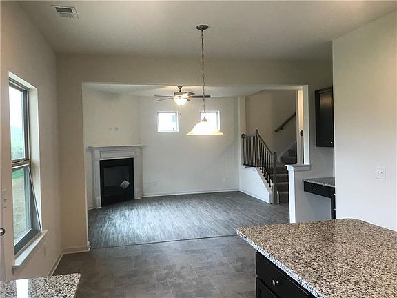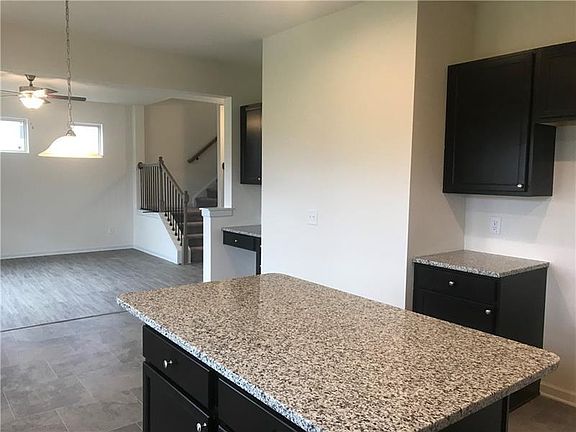 - Kitchen Features: Cabinets Stain, Eat-in Kitchen, Pantry, View to Family Room, Kitchen Island, Solid Surface Counters