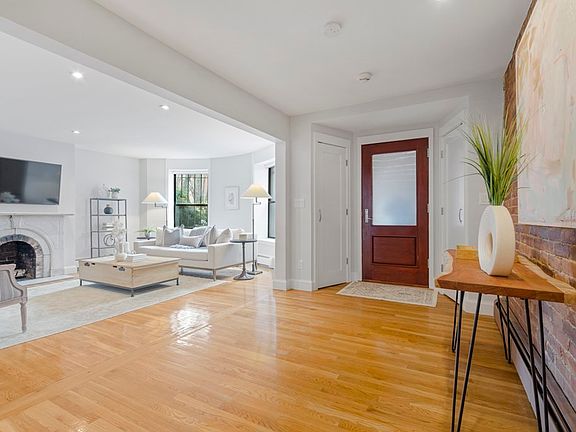 Thoughtfully renovated 3+ bedroom/2 bath duplex on picturesque Worcester Square combines abundant charm and contemporary sizzle! Private entrance opens to a spacious foyer and lovely bow front living room overlooking the square. Gracious hallway leads to the primary and second bedrooms as well as a luxurious bath. Lower level features wide open kitchen/family room plus space for a large dining table. Wide expanse of glass across the back frames the inviting landscaped patio. Adjacent third bed and full second bath plus bonus office space offer rare room count and utility. Central A/C, laundry, hardwood floors, and ample closet/storage space throughout. This generously proportioned residence offers the best of urban living and the wood-burning fireplace and exposed brick delightfully complement the modern finishes. Convenient to public transport and the many shops and restaurants that the South End has to offer. Direct access parking space seals the deal!