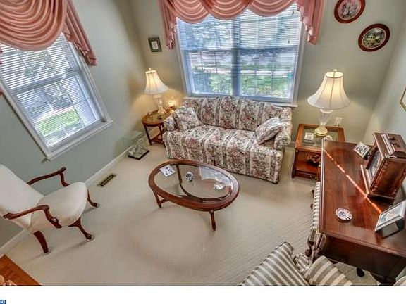 This highly desirable, and seldom offered, Winterthur model SNG home with full unfinished basement is loaded with upgrades and warm, inviting decor. Walk into the inviting, open floor-plan that has your light filled, bright formal living and dining spaces boasting cathedral ceilings and two story foyer. Move through the dining room to the beautiful eat-in kitchen with 42" natural cherry cabinetry, warm coordinating granite, large island that provides extra storage and culinary space, and top of the line Stainless Steel appliances. The kitchen opens to gracious FAM room with fireplace and natural wood mantel surrounded by custom floor-to-ceiling built-ins and French door to the back porch. The porch allows for intimate dining or early morning reading surrounded by specimen trees and unobstructed views. Hardwood floors run throughout the first floor with the exception of the formal living room. Additional upgrades and amenities include: central vacuum, security system, designer light fixtures, extensive recessed lighting throughout each room with dimmers, full unfinished basement ready for finishing or additional storage. The professionally designed spacious Main bedroom features an additional walk-in closet complete with California organizers and built-ins. "It is the closet to die for!" Treat yourself to the completely remodeled, spa-like, master bath complete with double sinks, tiled walk-in shower, and warm, inviting tones. Upstairs features the second bedroom, full bath and loft style sitting room which is spacious and bright. Home is within walking distance to the fabulous Flowers Mill clubhouse complete with indoor and outdoor pools, ballroom, billiards, cards, crafts, meeting rooms, competitive tennis courts and bocci ball courts. Flowers Mill is centrally located near shopping, hospitals, and dinning, and the quaint villages of Yardley, Newtown and New Hope. Hop the train to New York or Philadelphia- the station is right around the corner!