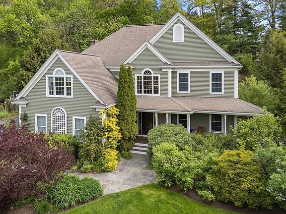 Custom contemporary Colonial home is tucked into lush, beautifully landscaped grounds, located in a sought-after neighborhood. The stunning kitchen, featuring a 5-burner Wolf cooktop, Sub-Zero refrigerator, Bosch oven, and a built-in Miele cappuccino machine—perfect for both everyday living and entertaining.The open floor plan seamlessly connects the kitchen to the inviting family room as well as a show-stopping dining room, highlighted by glass walls and a vaulted ceiling that bring in abundant natural light.A formal living room opens to a private office through elegant French glass doors, creating the perfect work-from-home setup. Upstairs, the spacious primary suite includes a beautifully appointed sitting area and a luxurious ensuite bath. Two generously sized bedrooms share a Jack and Jill bathroom, a third bedroom featuring a vaulted ceiling and walk-in closet.The finished basement offers exceptional space, including wine cellar, tasting room, home gym, and hangout space