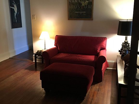 LOOKING FOR A CHANGE? Move right into our cozy, partially-furnished 1-BR+den apartment in a beautiful, restored 1830s Victorian. Apartment has den with a balcony overlooking award-winning gardens. There is a large, eat-in kitchen. No dishwasher. As you walk into the apartment, the bathroom (shower/tub) is on your left. You walk into the living room that has a corner closet and a very large mirror to brighten up the room. The bedroom is on the other side of the LR and has two large windows, plus another opening to the LR. The den and kitchen are past the living room. Find everything you'll need here in our friendly town. BEST LOCATION! Enjoy art galleries, restaurants, and shops. Walk across the Delaware River to New Hope and Bucks County, PA. References required. Sorry, NO PETS). NON-SMOKNG house and grounds. Apartment is not appropriate for children. Utilities included. $1850 with a deposit of $3700. Length of lease is one year. 1 year lease