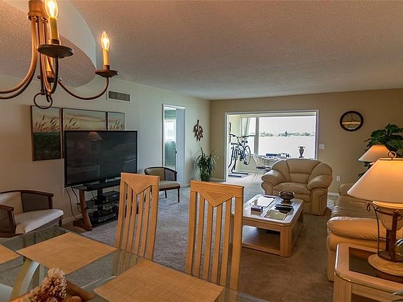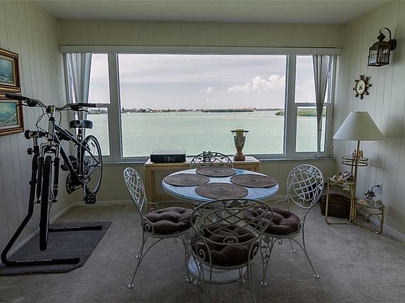 Lovely Treasure Island Beach Neighborhood. Fabulous Water Views from BIG PICTURE WINDOW. Spacious Open Light Bright Floor Plan. Furnished 2 Bedroom, 2 Bath. Close to the Beach. Convenient to Restaurants & Entertainment & Shopping in Downtown Treasure Island. Bike & Kayak Storage, Fishing Pier, Assigned Parking, Shared Laundry Room. 12 month Lease, Sorry No Pets. Furnished.